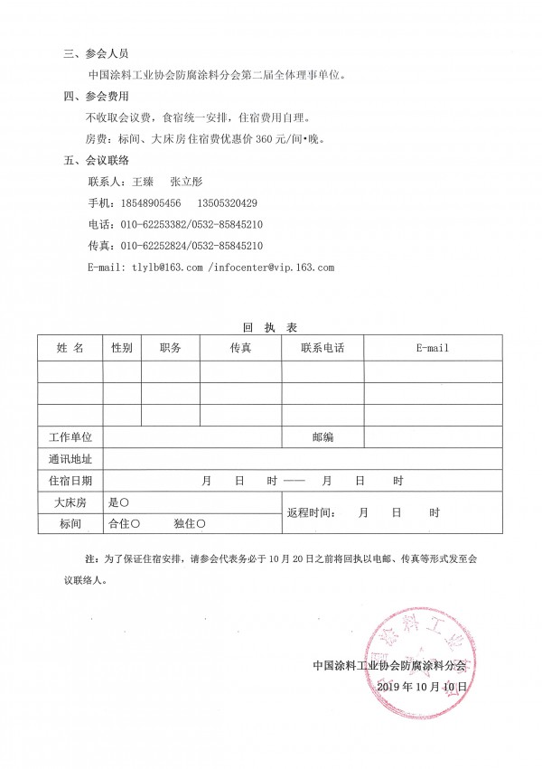 注:为了保证住宿安排,请参会代表务必于10月20日之前将回执以电邮、传真等形式发至会议联络人。